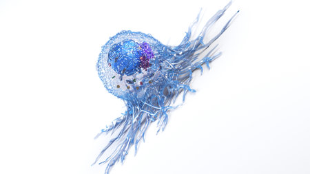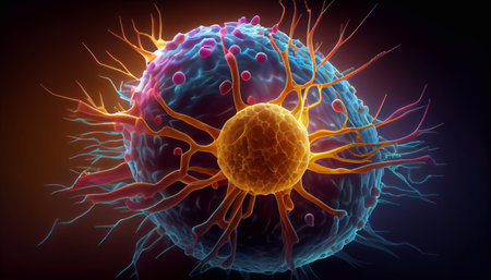medically accurate illustration of a Abnormal cancer cell with numerous long slender tendrils