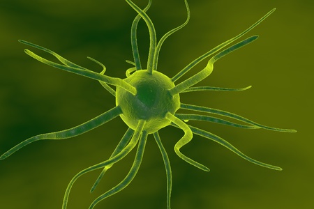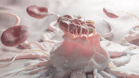medically accurate illustration of a Abnormal cancer cell with numerous long slender tendrils