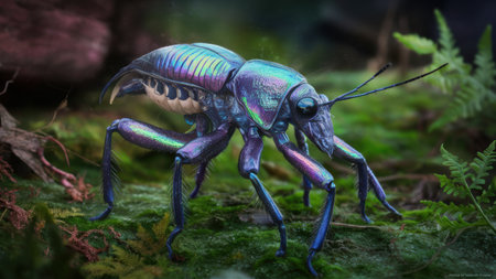 Colorful fantasy beetle closeup on dark background ideal as unique insect character for gaming illustration children books and creative design projects
