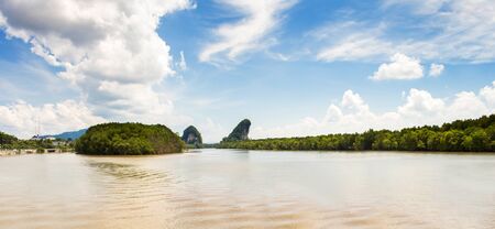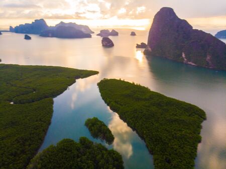 Mountain sunrise on mangrove forest sea bay sky cloud sightseeing travel in Phangnga Thailand