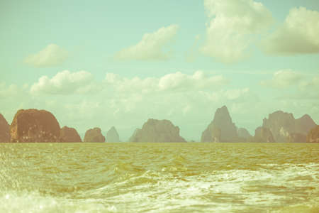 beautiful blue ocean landscape and clouds with islands, Phuket, Thailand.Toned effect. Travel tropical background. Focus on water