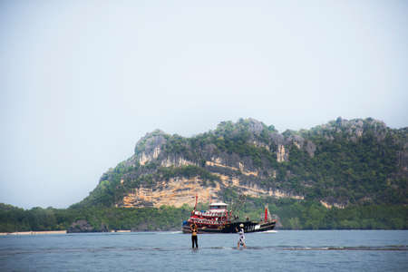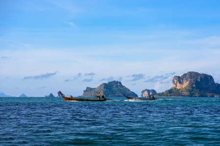 Travel on a long-tail boat in the sea in Krabi