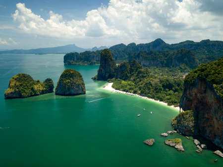 Krabi - Railay beach seen from a drone. One of Thailand's most famous luxurious beach.