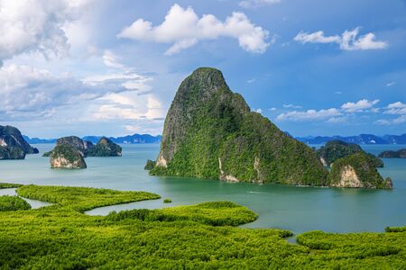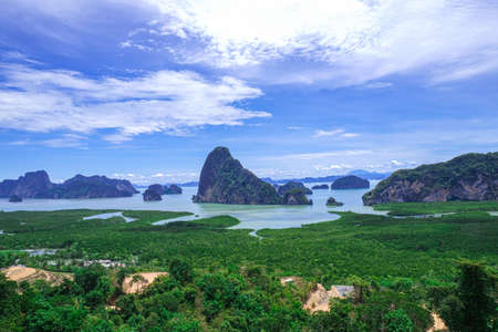 Unseen in Thailand Samed Nang Chee Point of view Island and forest mangrove. Beautiful scenery ocean. Phang nga vacation destination.