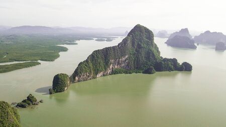 Aerial view Ao Phang Nga Bay in Krabi, Thailand.