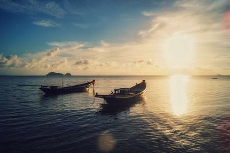 Traditional wooden fisherman boat on Koh Phangan island, Thailand in a summer day