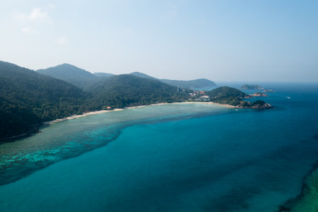 View from the height of the beach called Long Beach of Redang Island, Malaysia. The most beautiful beach on redang island.