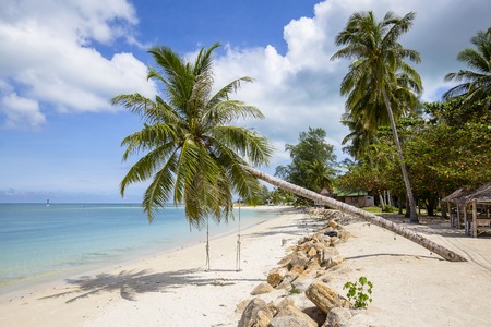 Beautiful tropical beach, coconut palm tree and blue sea water in island Koh Phangan , Thailand