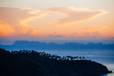 Beautiful sunset over koh Mak tropical island and its beach, near koh Chang, Trat, Thailand