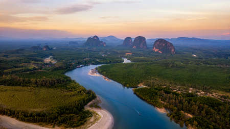 Beautiful Sunrise aerial view landscape Phang nga sam chong Thailand