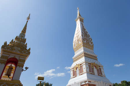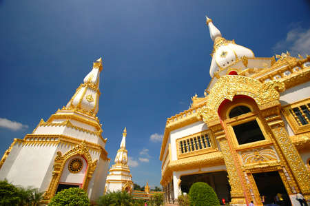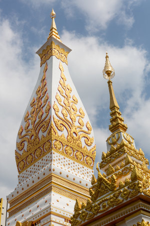 Ornament: architecture landscape of white and gold pagoda at wat Phrathat Nong Bua in Ubon Ratchathani province, Thailand