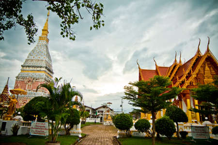 Wat Mahathat Temple during sunset at Nakhon Phanom Province, Thailand