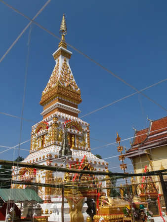 A beautiful view of Buddhist temple statues at Wat Phra That Renu Nakhon Temple, Nakhon Phanom province, in North-Eastern Thailand Nakhon Phanom, Thailand.