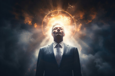 A person meditates peacefully with flowing air around their head, embodying tranquility in a clear, open space under a bright sky during midday.