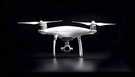 Drone is flaying against isolated black background