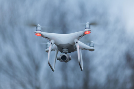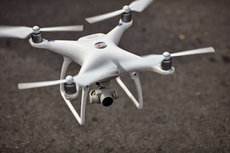 Editorial Swansea, UK - June 12, 2017: The DJI Phantom 4 drone, also known as an unmanned aerial vehicle (UAV), growing in popularity worldwide and a cause for concern over safety and privacy.