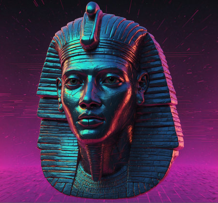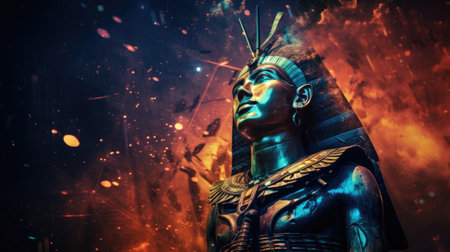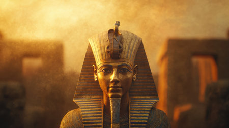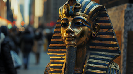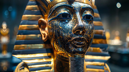 This stunning close-up image features an ancient Egyptian pharaoh bust, showcasing exceptional craftsmanship and intricate details, perfect for cultural and historical themes.