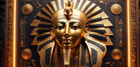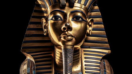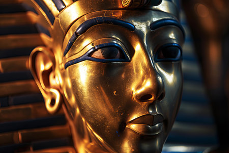 Ancient egyptian pharaoh golden mask close up with intricate detail.