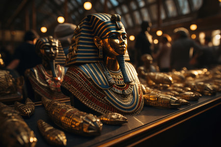 Golden mask of Tutankhamun on display, a masterpiece of ancient Egyptian art