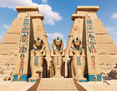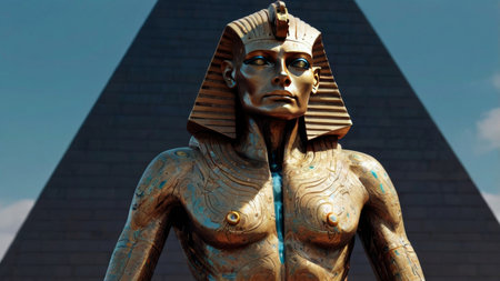 Majestic ancient statue of female egyptian pharaoh, a relic from ancient egypt