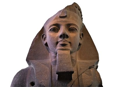 Ancient Egyptian sculpture on white background with copy space. Selective focus.