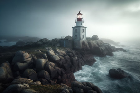 Captivating and serene, this landscape features a striking lighthouse against the vast sea. Ideal for travel, nature, and adventure themes. Generative AI Technology.
