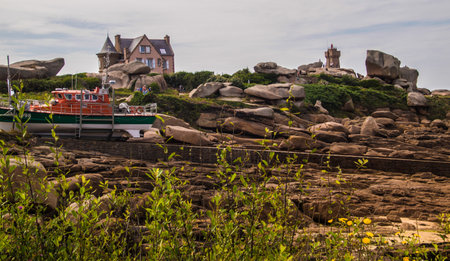 The beautiful pink granite coast of Ploumanach in Brittany. France