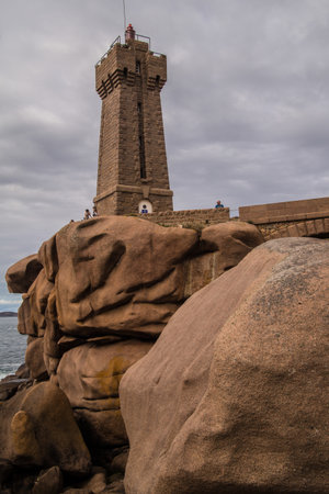 Ploumanac'h Lighthouse - Mean Ruz Lighthouse - active lighthouse in Perros-Guirec, Cotes-d'Armor, Brittany, France