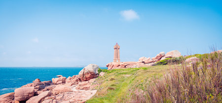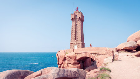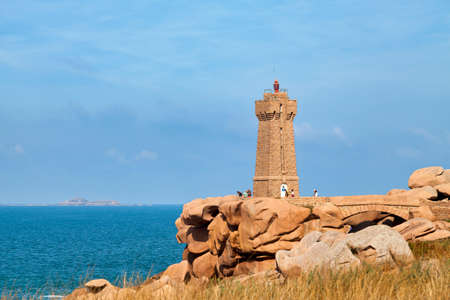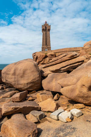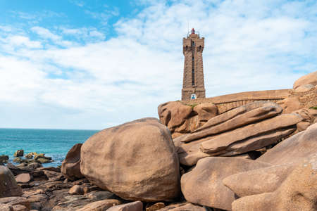 Lighthouse of Ploumanac'h or Mean Ruz on Pink Granite Coast in Perros-Guirec, Brittany, France