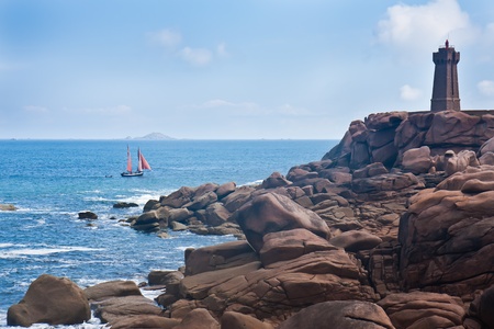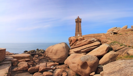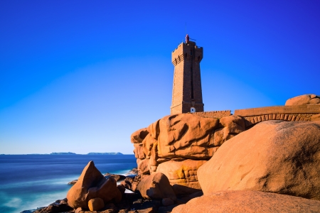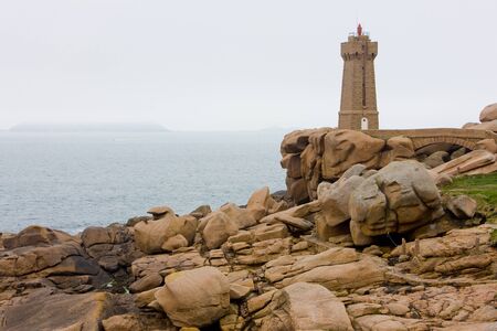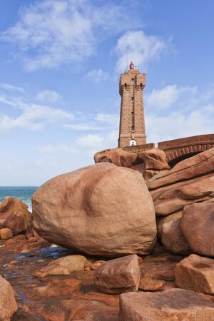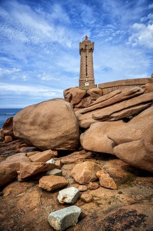 Men Ruz lighthouse, Granit Rose coast, Brittany.