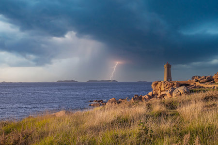 Lighthouse around Perros-Guirec at the Pink Granite Coast in Brittany, France