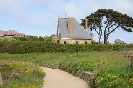 Ploumanach coast spring view (between Perros-Guirec and Pleumeur-Bodou, Brittany, France). The Pink Granite Coast.