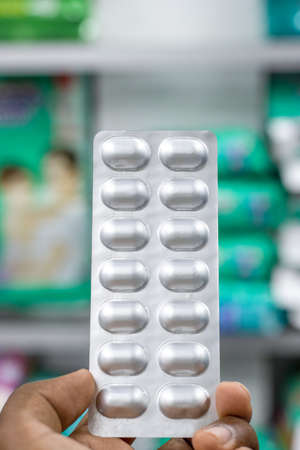 health care holding at drugstore Pack birth control pills pharmacy drugstore