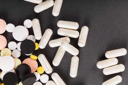 Many different pills on dark background
