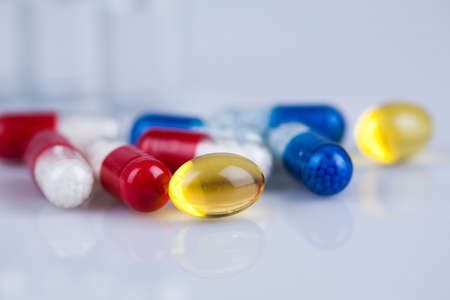 Capsules over a white background. Medical and pharmaceutical concept