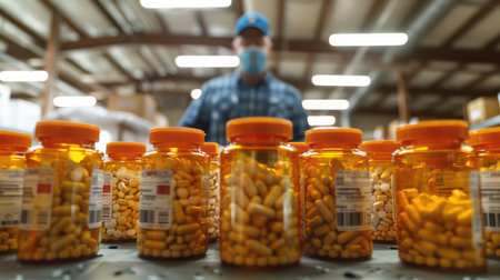 A team of pharmacists meticulously pack medication bottles into delivery bags, ensuring accurate and efficient distribution This organized process guarantees precise medication delivery, minimizing errors and maximizing patient safety The sterile environment of the warehouse ensures the highest quality standards are met AI Generative