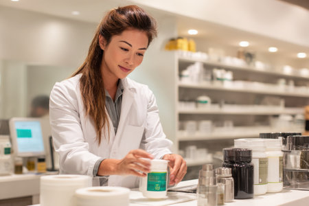 A dedicated pharmacist meticulously checks medication expiration dates, prioritizing patient safety and quality control Their vigilance ensures that only fresh, effective medications are dispensed, safeguarding health and well-being in medical settings AI Generative