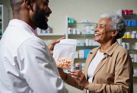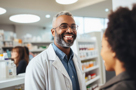 Hispanic pharmacist and African American client: a wellness conversation.