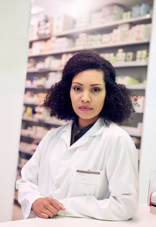 Always happy to be or service. Portrait of a young pharmacist working in a chemist.