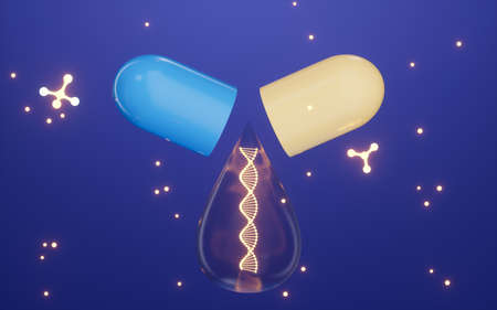 DNA in the capsule , 3d rendering.
