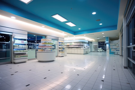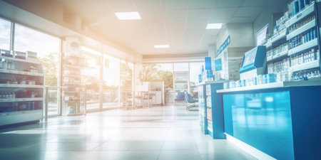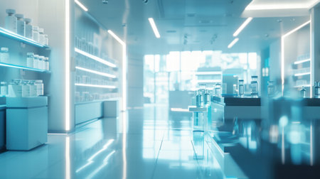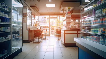 modern pharmacy's interior. photo showcases the clean and well-organized space where essential healthcare products and services are accessible to the community.