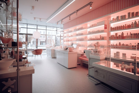 photo of inside empty makeup shop Photography AI Generated