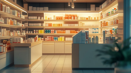 Blurred background of a pharmacy store realistic 3D Generative AI