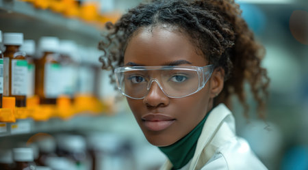 Chemistry of Smiles: Female Researcher Poses in Pharmacy
