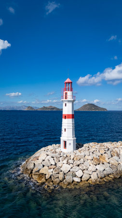 Red and White Lighthouse on Aegean Coast in Turgutreis, Bodrum, Turkey