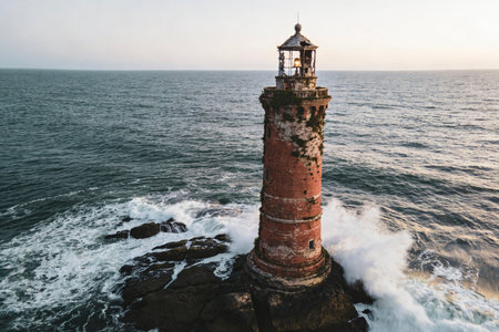 Historic lighthouse standing on a rocky coast, guiding ships safely through the waters.
