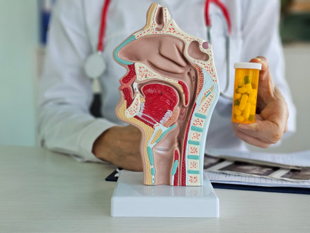 Doctor and anatomy of the nasopharynx with pills. Diseases of the throat, nose and thyroid gland and medications