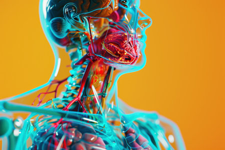 3d human model with inner organs inside. Medical anatomical background with copy space for text.