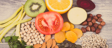 Healthy nutritious food as source natural minerals, vitamin P and dietary fiber