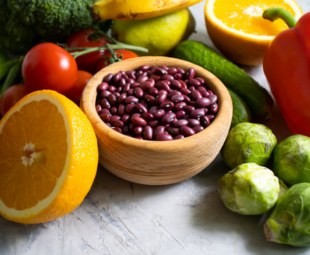 Bright and colorful assortment of fresh produce on tiles